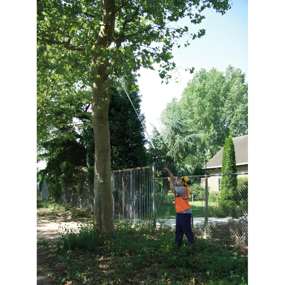 Aluminiowy słupek ma owalny kształt, dzięki czemu masz bardzo precyzyjną kontrolę nad kierunkiem ostrza, czego będziesz potrzebować podczas przycinania na dużej wysokości. Co więcej, ten kształt zapewnia większą wytrzymałość i sztywność na całej długości pilarki i ogranicza zginanie do minimum.