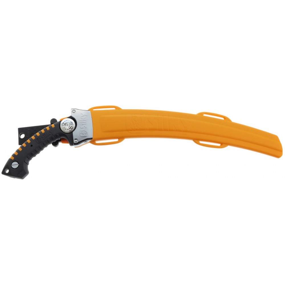 Wygodna gumowa rękojeść pochłania wibracje i zapewnia pewny chwyt nawet w rękawicach oraz w mokrych i zimnych warunkach. Żółta pochwa jest dobrze widoczna i można ją łatwo przymocować do uprzęży lub nogi za pomocą pasków.
