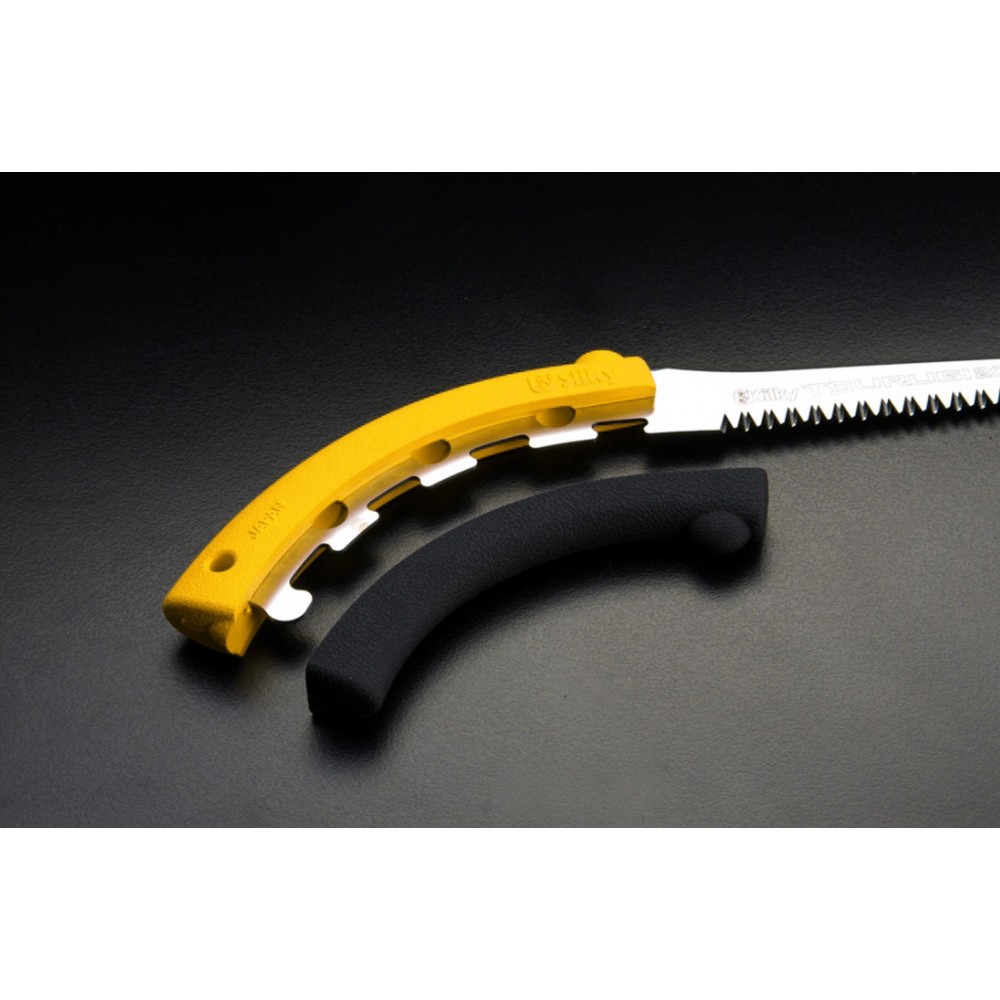 Wytrzymałe ostrze cechuje się wysoką sztywnością oraz rzędem ostrzy jak brzytwa, agresywnych zębów, które pozostawiają gładkie i czyste cięcie. Wygodna rękojeść typu Genki nie posiada śrub ani wkrętów – składa się z dwóch gumowych elementów doskonale obejmujących stalowy rdzeń. Proste i bez użycia narzędzi.