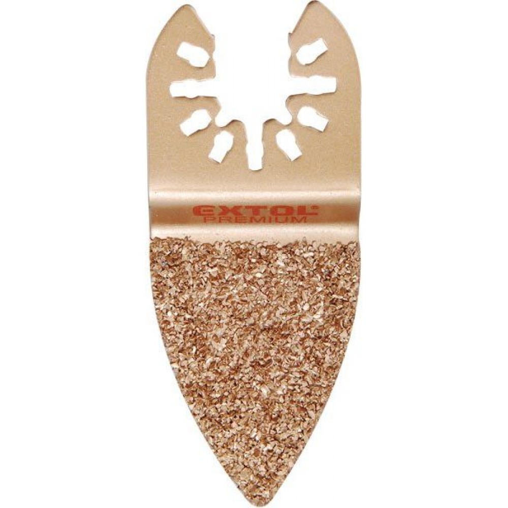 TOL PREMIUM Szpachelka szpiczasta do urządzenia wielofunkcyjnego, 33mm 8803857Mocowanie pasujące do urządzeń firm: AEG, Black & Decker, Bosch, Dremel, Einhell, Extol, Fein, Makita, Milwaukee, Multi Master, PowerUp, Ridgid, Rockwell, Skil, Worx, Yato. Do szlifowania zgrubnego materiałów: glazury, betonu, kamienia i klejów do drewna, szpachelka jest pokryta węglikiem spiekanym.