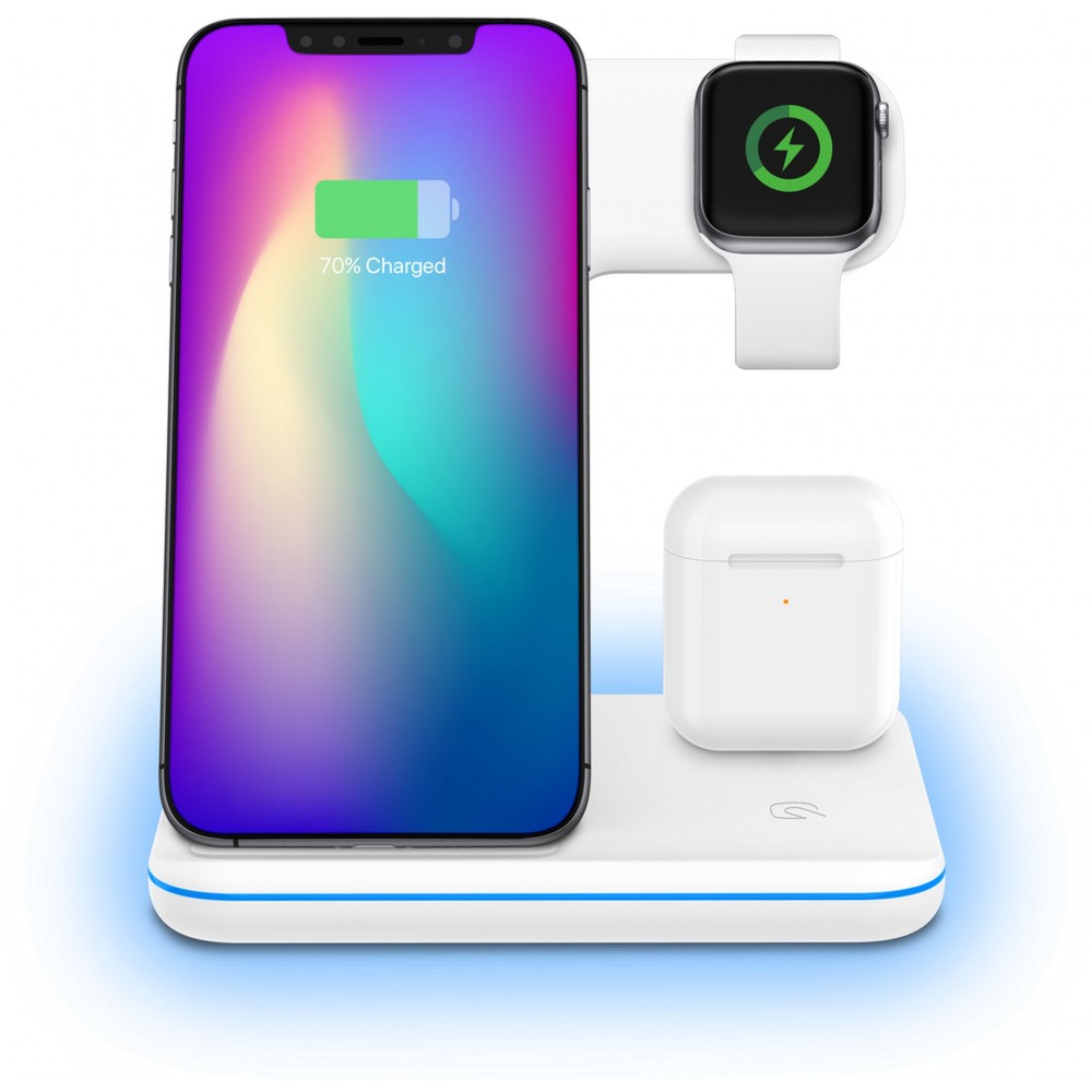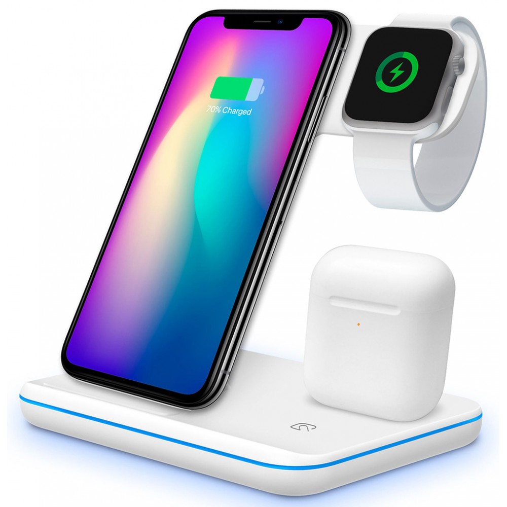 • Bezprzewodowa stacja ładująca dla urządzeń Apple może ładować trzy urządzenia jednocześnie (iPhone, Apple Watch, Airpods).